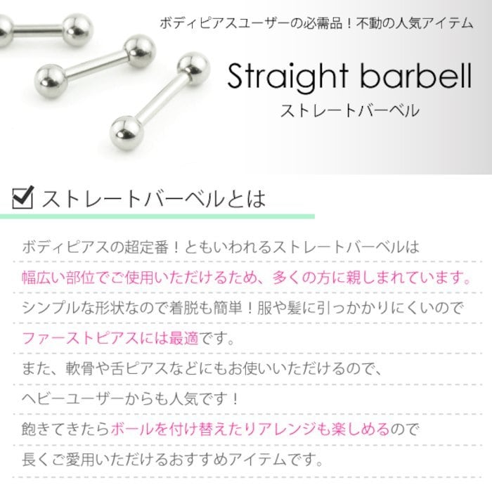 5本セット18G バーベル ボディピアス サージカルステンレス 316L 軟骨ピアス 18gピアス ボディピアス ショート ストレート バーベル
