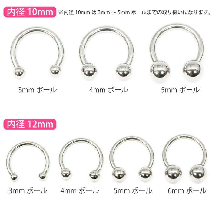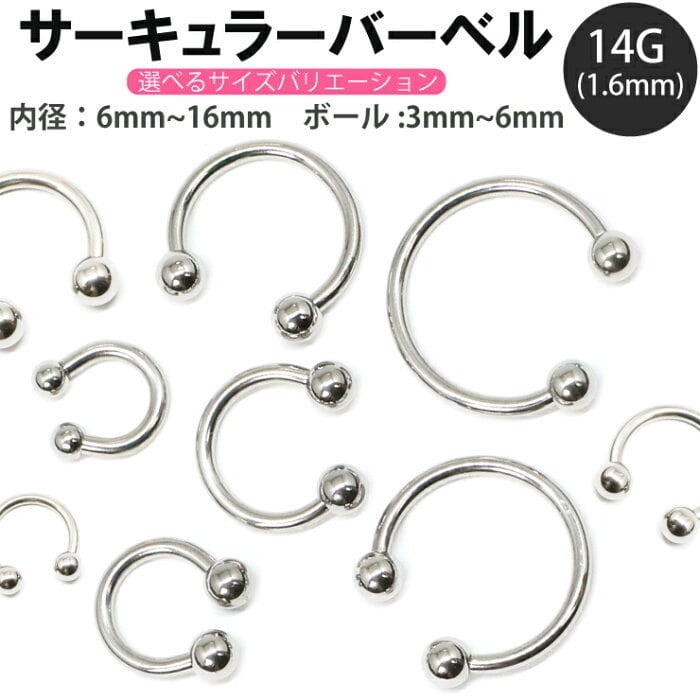 4本セット サーキュラー バーベル 14G(1.6mm) 内径(6、8、10、12、14、16mm) ボール(3、4、5mm) ボディピアス