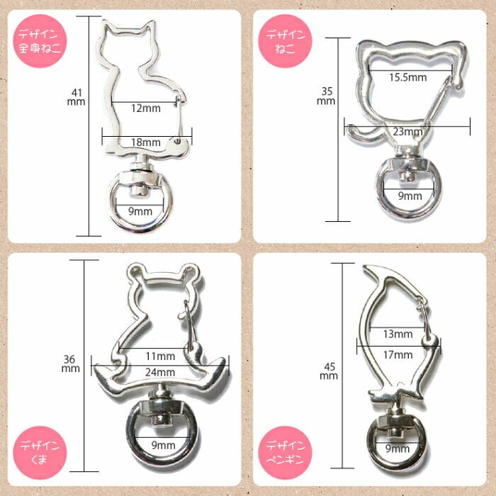 高品質 5個 ネコ 猫 キャット 三日月 ペンギン クマ ベア 熊 花 フラワー ジンベイザメ イルカ モチーフ ナスカン キーホルダー パーツ