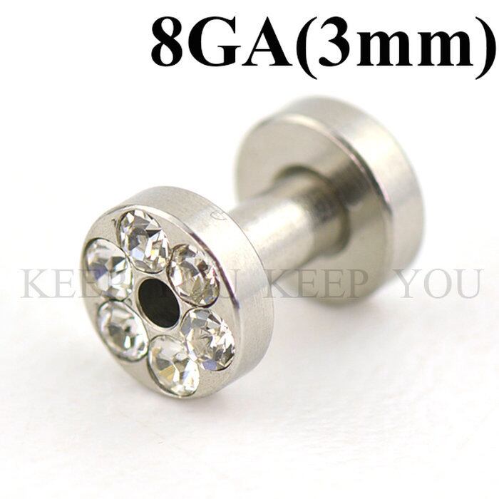 1本 8G フレッシュトンネル アイレット ラインストーン仕様 サージカルステンレス316L ボディピアス