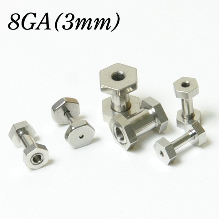 1個 8G フレッシュトンネル アイレット 六角形 ヘキサゴン ボディピアス