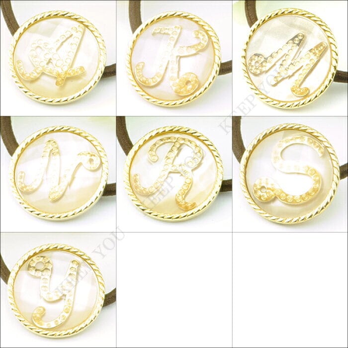 ヘアゴム コンチョ ラウンド イニシャル ボタン ポニー 全4色【A K M N R S Y ブラック オフホワイト ピンク ダークレッド ヘアゴム ヘアカフス ヘアリング ヘアクリップ シュシュ 髪どめ ヘアアクセサリー】
