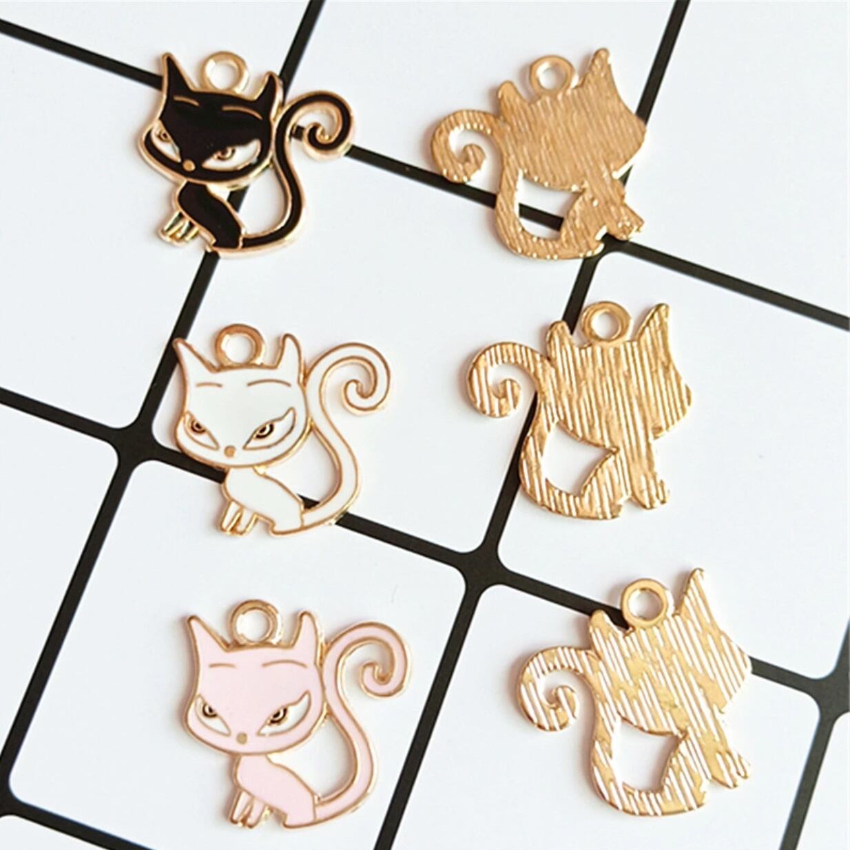 2個 3カラー(選択可能) キャット 仔猫 ハンドメイド ピアス イヤリング ペンダント ネックレス チャーム パーツ