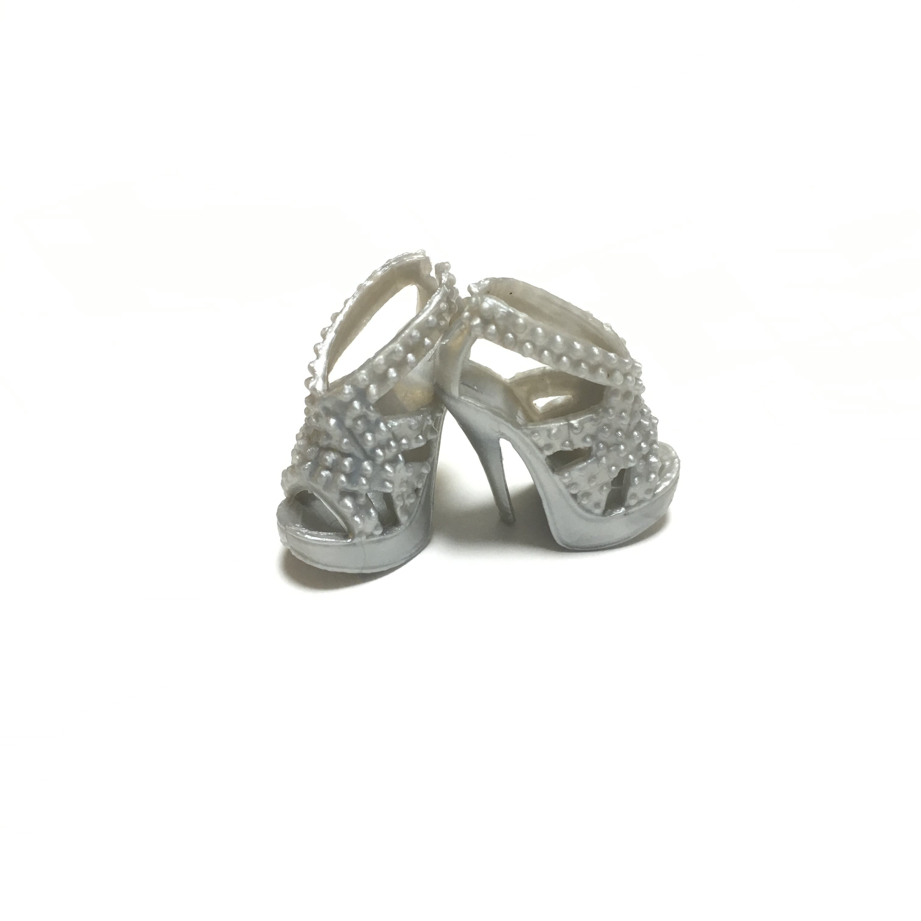 1ペア シルバーカラー スタッズ ハイヒール サンダル 人形 ドール用 カスタム アイテム ドール用品 ドールハウス