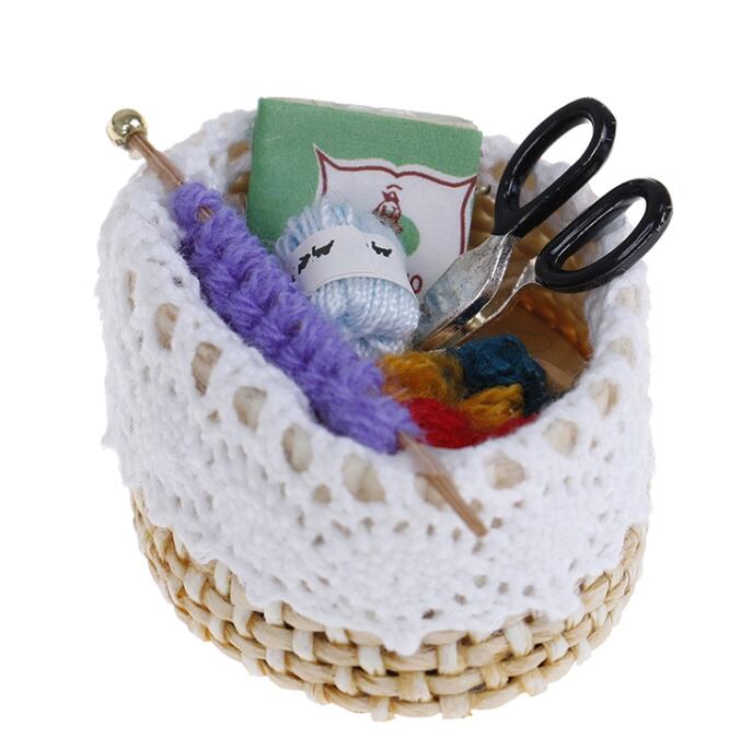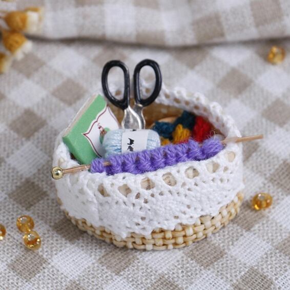 毛糸 ハサミ 編物セット 収納 バスケット ミニチュア カスタム ドール用品 ドールハウス