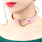 1本 ハート フロントチャーム レザー調 チョーカー ネックレス ネックアクセサリー