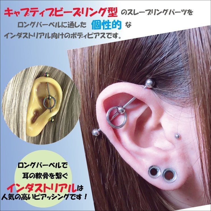 【出品 ボディピアス】バーベル インダストリアル キャプティブ ビーズリング サークル リング サーキュラー バーベル バナナバーベル ラブレット スクランパー