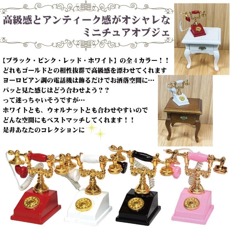 1台 アンティーク調 固定電話機 カスタム ミニチュア レトロ調 アイテム パーツ ドール用品 ドールハウス 4カラー(レッド ホワイト ピンク ブラック)
