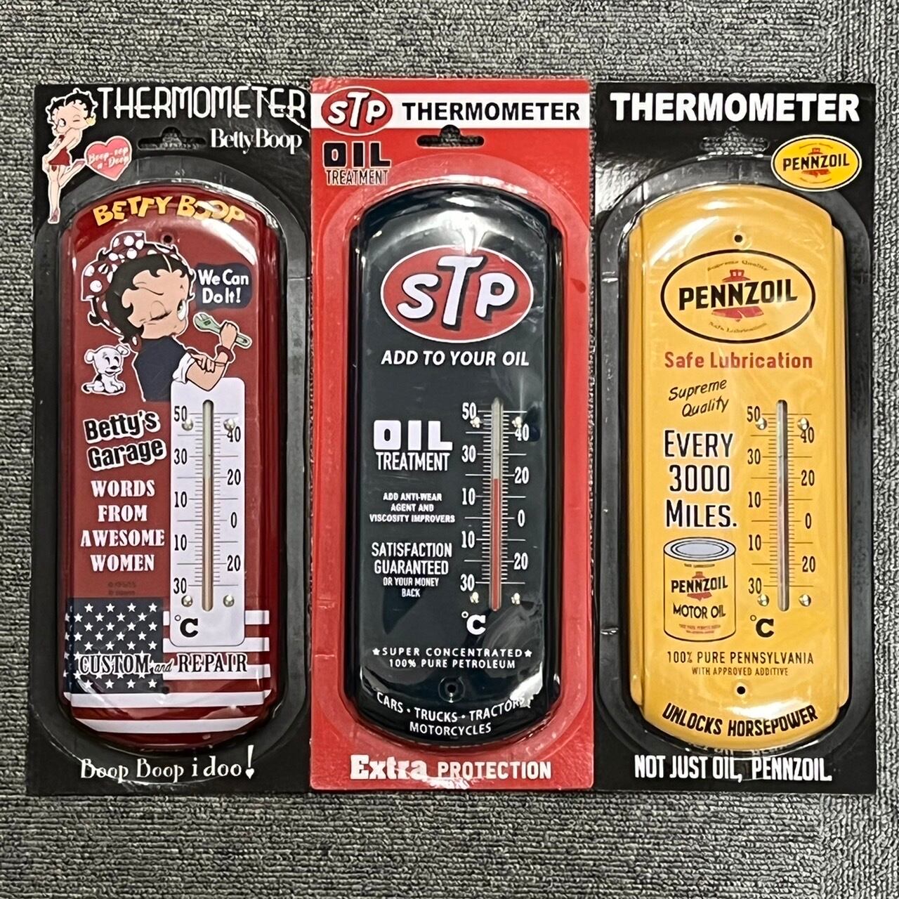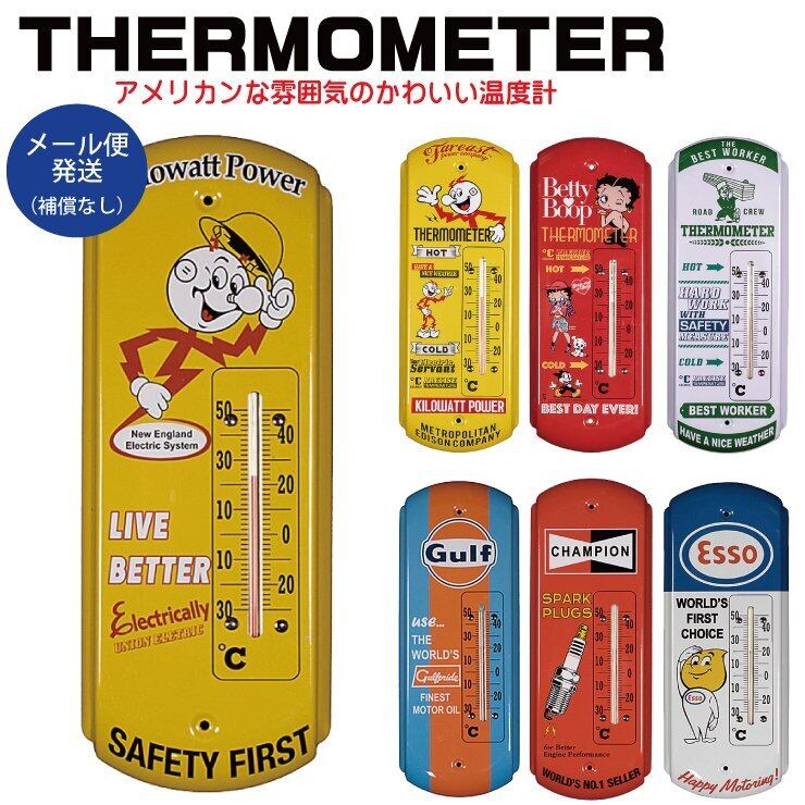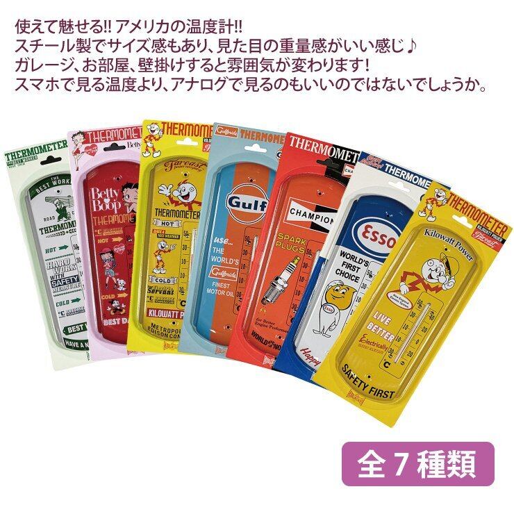 1個 サーモーメータ 温度計 6種類 アメリカンキャラクター Betty Boop FEPC Gulf Esso エッソ CHAMPION 壁掛け スチール インテリア アメリカン雑貨 お部屋 ガレージ 店舗