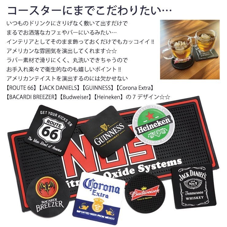 1枚 ラバー コースター アルコール バー キッチン テーブル アイテム ( ルート66 ジャックダニエル ギネス コロナ ハイネケン バドワイザー )