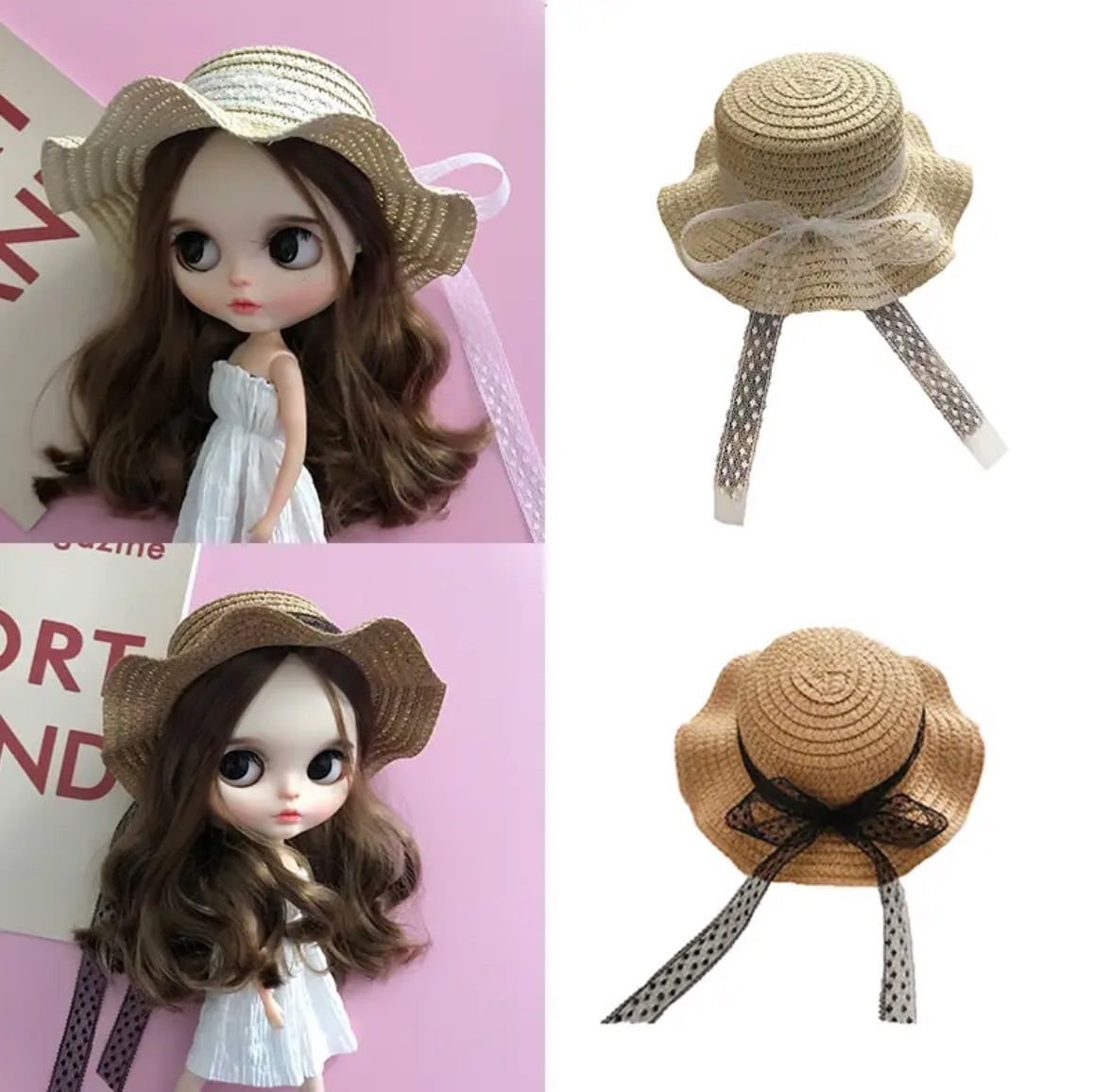 1個 ストローハットタイプ 帽子 ハット 女性用 ブライス ドール ICYドール ぬいぐるみ などに装着可能 ドール用品 ミニチュアアイテム ドル活 ディスプレイ