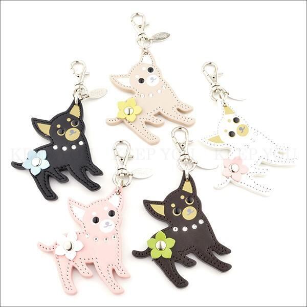 チワワチャーム 牛本革 レザー ラインストーン付き Happy 全5色 キーホルダー チャーム リード 首輪 キーリング 犬 日本製 ハッピー hc-22