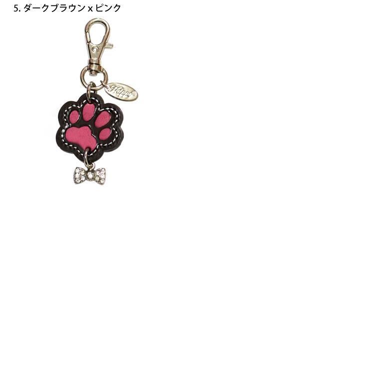 1個 肉球&リボンチャーム 牛本革 ラインストーン付 Happy 全5色 キーホルダー チャーム 首輪 キーリング 猫 犬 日本製 made in Japan ハッピー HC-12