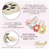 肉球&リボンチャーム 牛本革 ラインストーン付 Happy 全5色 キーホルダー チャーム 首輪 キーリング 猫 犬 日本製ハッピー HC-12