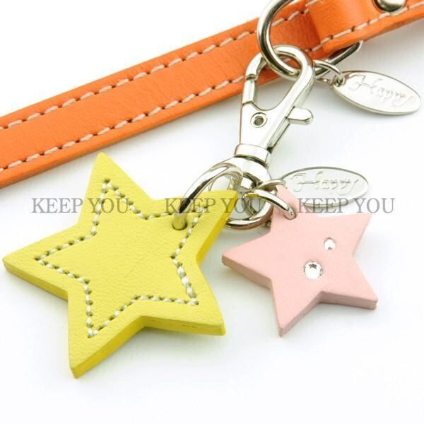 星チャーム 牛本革 レザー Happy キーホルダー チャーム リード スター 首輪チャーム キーリング スター 日本製 made in Japan ハッピー HC-06